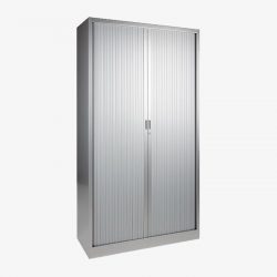 De standaard archiefkast voorzien van 4 legborden. Door plaatsing tegen een wand wordt met deze kantoorkast veel opbergruimte gecreëerd. De kunststof roldeuren maken dat de deuren soepel lopen.